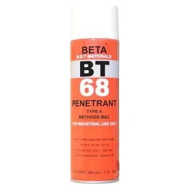 Beta bt-68 penetrant sprey (kontrast kırmızı) Gün ışığı görünür çatlak muayene penetrant sprey tip 2 metot b&c ; Solvent ile kaldırılır, kırmızı yüksek görünüme sahip boya. ; Tüm metal malzemeler ve sentetik plastikler, seramikler ve camlara uygulanabilir. ; Yüzeye açık süreksizlikleri hızlı bir şekilde tespit eder. ; Basit ve hızlı değerlendirilir. ; Düşük maliyetlidir. ; Elektrik ve yan ekipmana ihtiyaç duymaz. ; Düşük miktarda sülfür ve halojen içerir. ; Klorlu solvent içermez. ; Standart : En ıso 3452-2/astm e-165/astm e-1417/mıl-I-25135/ams 2644