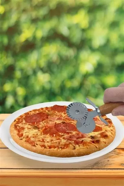 BUFFER® Ahşap Saplı 2li Hamur Kesme Ruleti Düz ve Dalgalı Pizza Börek Kesici Aparatı sayesinde pizza kesmek artık çok pratik Her türlü hamur işi için kullanabileceğimiz bu kesme ruletinin 2 tane farklı bıçağı vardır Birisi düz kesim için, diğer bıçak dalgalı kesim için özel olarak tasarlanmıştır Ahşap tutma kolu sayesinde pizza, lahmacun, pide vb hamur işlerini keserken elleriniz acımaz Rahatlıkla kullanabilirsinizÇelik bıçaklar pas tutmaz Bulaşık makinesinde güvenle yıkayabilirsiniz