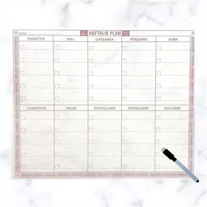 BUFFER® Şeffaf Kendiliğinden Yapışkanlı Kalemli Haftalık Planlayıcı 40cm-50cm